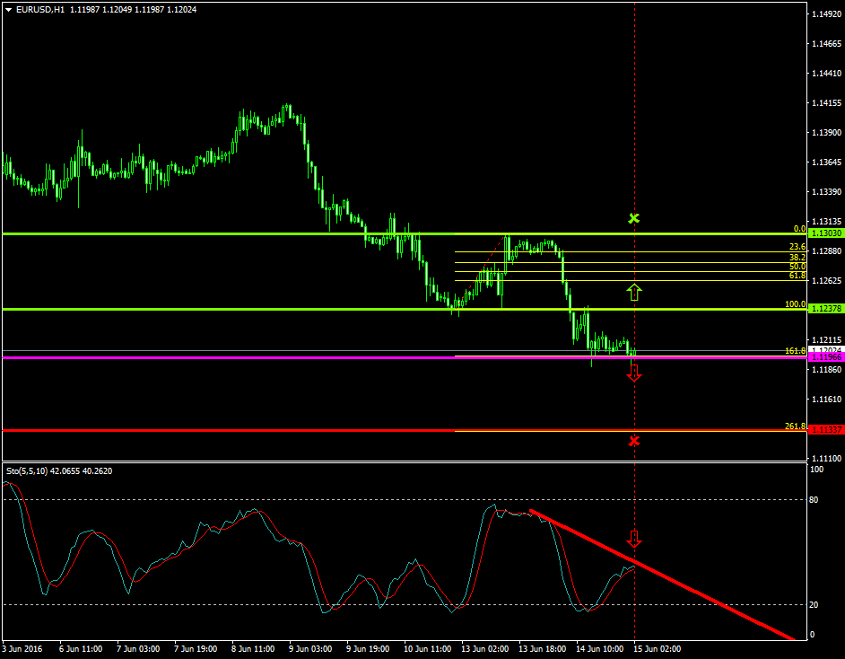 The EURUSD has been mostly oscillating, since the 13th of June 2016, within an aggressive bearish formation between the range of 1.1303 and 1.1196 respectively.
