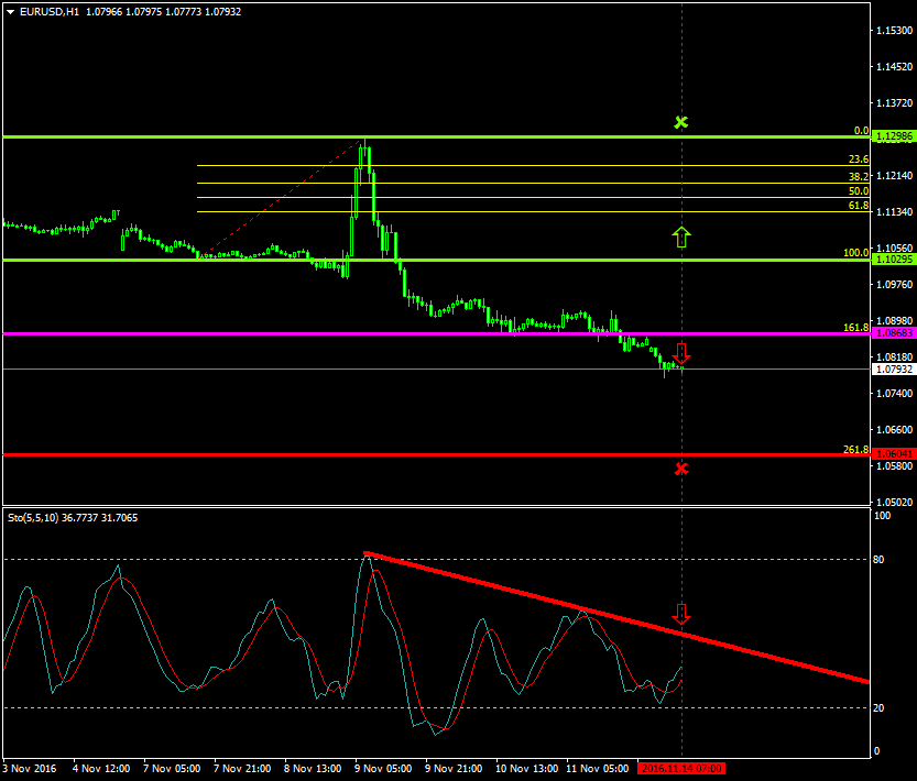 The price, since the 9th of November 2016, has been oscillating within a downside formation between the range of 1.1298 and 1.0868 respectively.